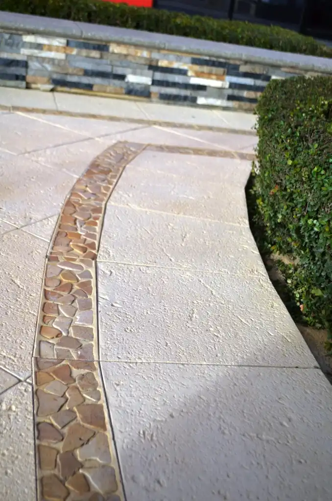 Sandstone Pavers and White Quartz Cladding Water Feature