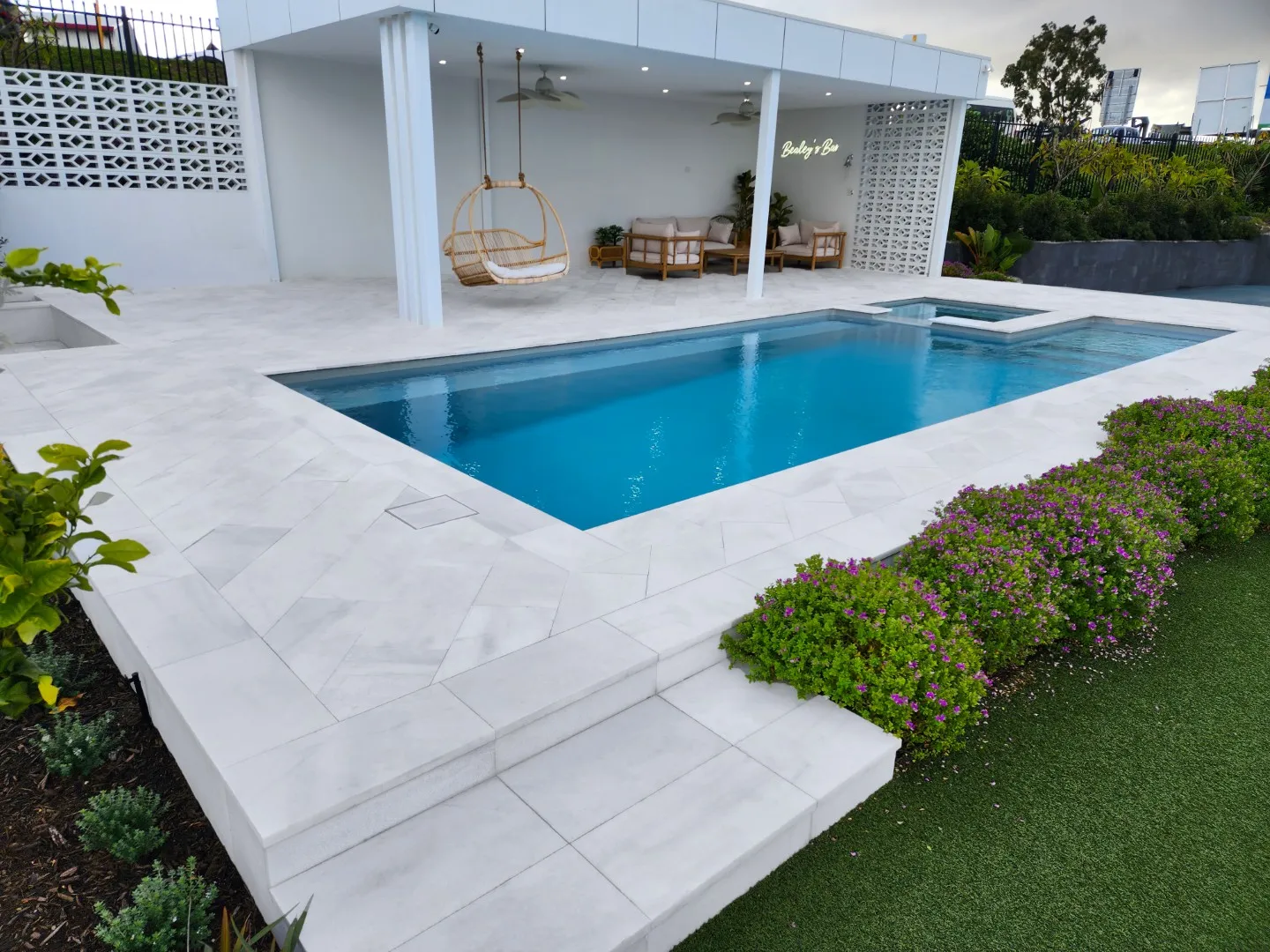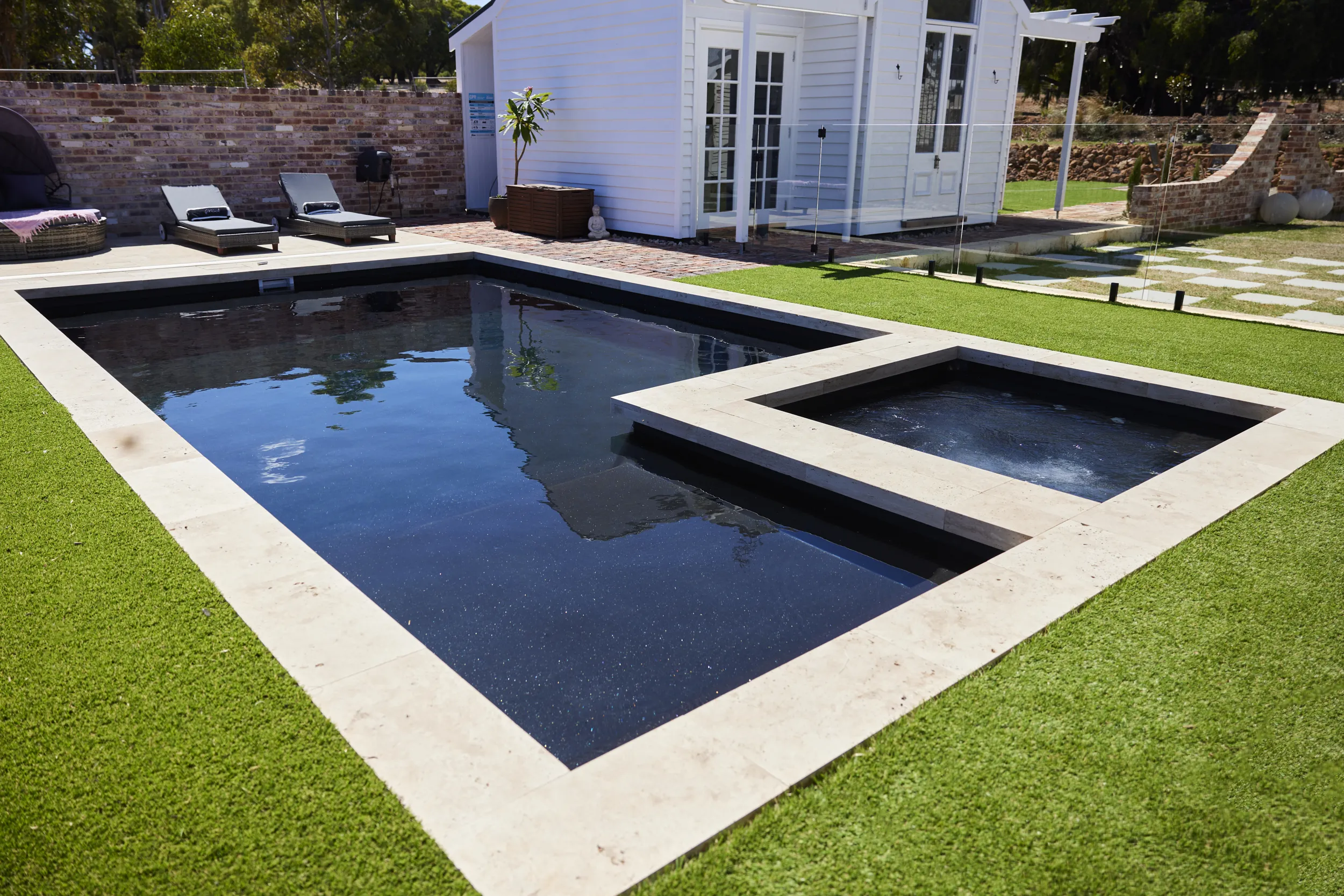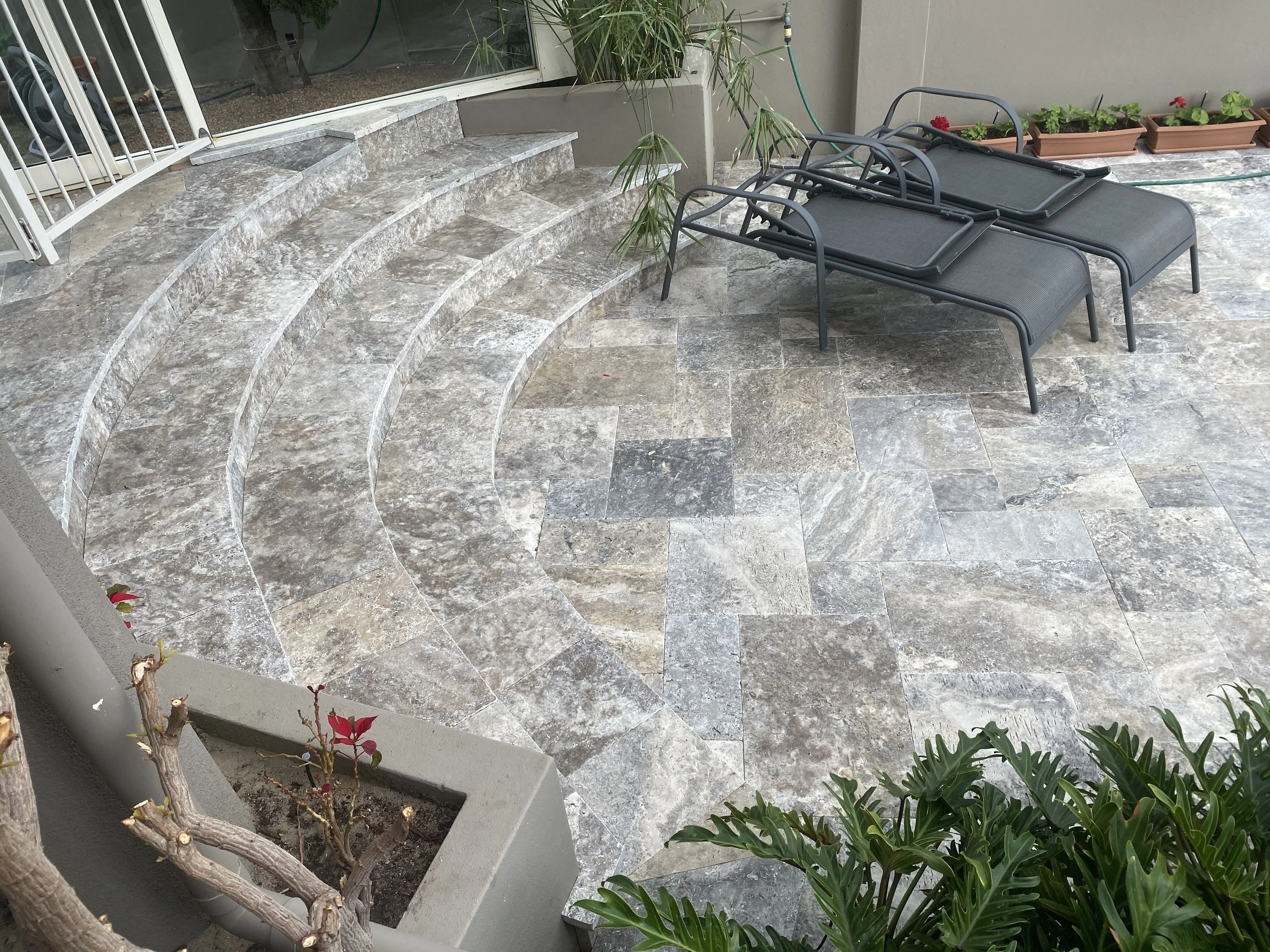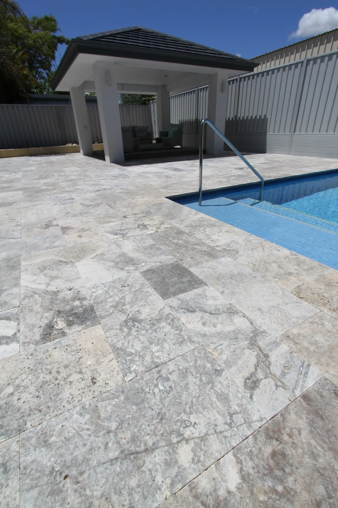This beautiful high quality Travertine paving can provide an almost seamless flow from structure to nature, or boldly stand alone as a landscaping statement.