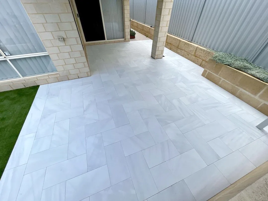 Warning! Cracker dust salt issues. Washed white or yellow sand will stain your stone. Salty cracker dust as a DIRECT TO STONE base, particularly when subjected to moisture can lead to salt attack on your stone. Plasterers sand is recommended as the final 30mm of screed to touch your stone, or as the entire sub-base providing the ground is compacted, edges of paving restrained and the joins remain full so no movement of stone is allowed in any direction. Use of Paveset or similar grout powder is recommended to ensure a clean, low maintenance and structurally sound finish. The gaps between all Freo Stone pavers must remain full at all times to preserve the integrity of the stone, its edges and eliminate sand deposits where weeds may grow. Use of yellow or so called "washed" white river sand is NOT suitable and NOT recommended for use on Freo Stone products. These sands have properties which will permanently stain your paving particularly when left on the surface or wet. These sands will allow weed growth and will wash out over a short time. Yellow sand (e.g. Plasterers) is only suitable for underneath the pavers as a base to install on. Any installer proposing the use of yellow or white sand is operating outside of our best installation standards which will compromise your warranty. Professional completion of your grouting now, will ensure the long term beauty and integrity of your project. Paveset product information sheet. Paveset material safety data sheet. Glue