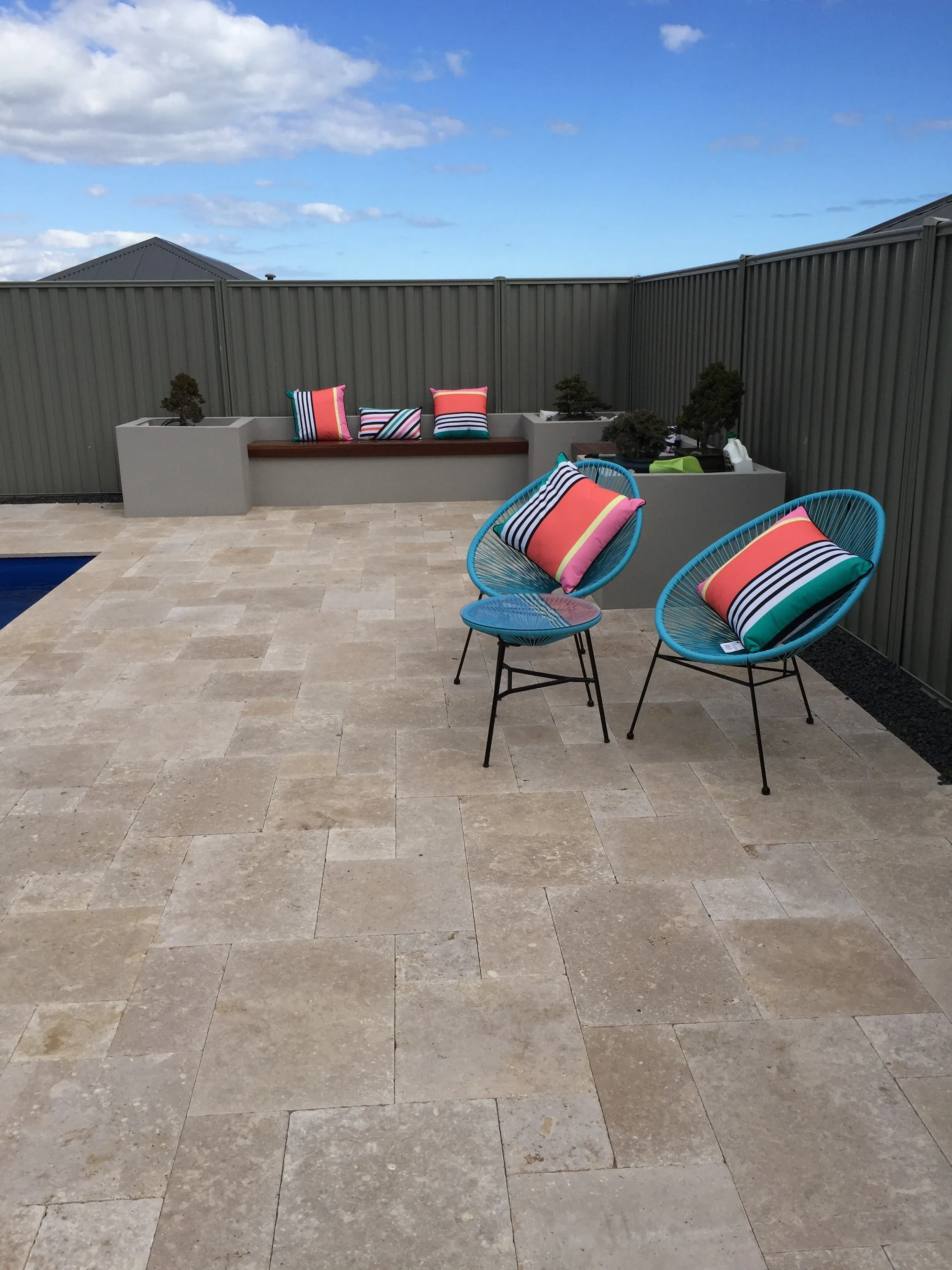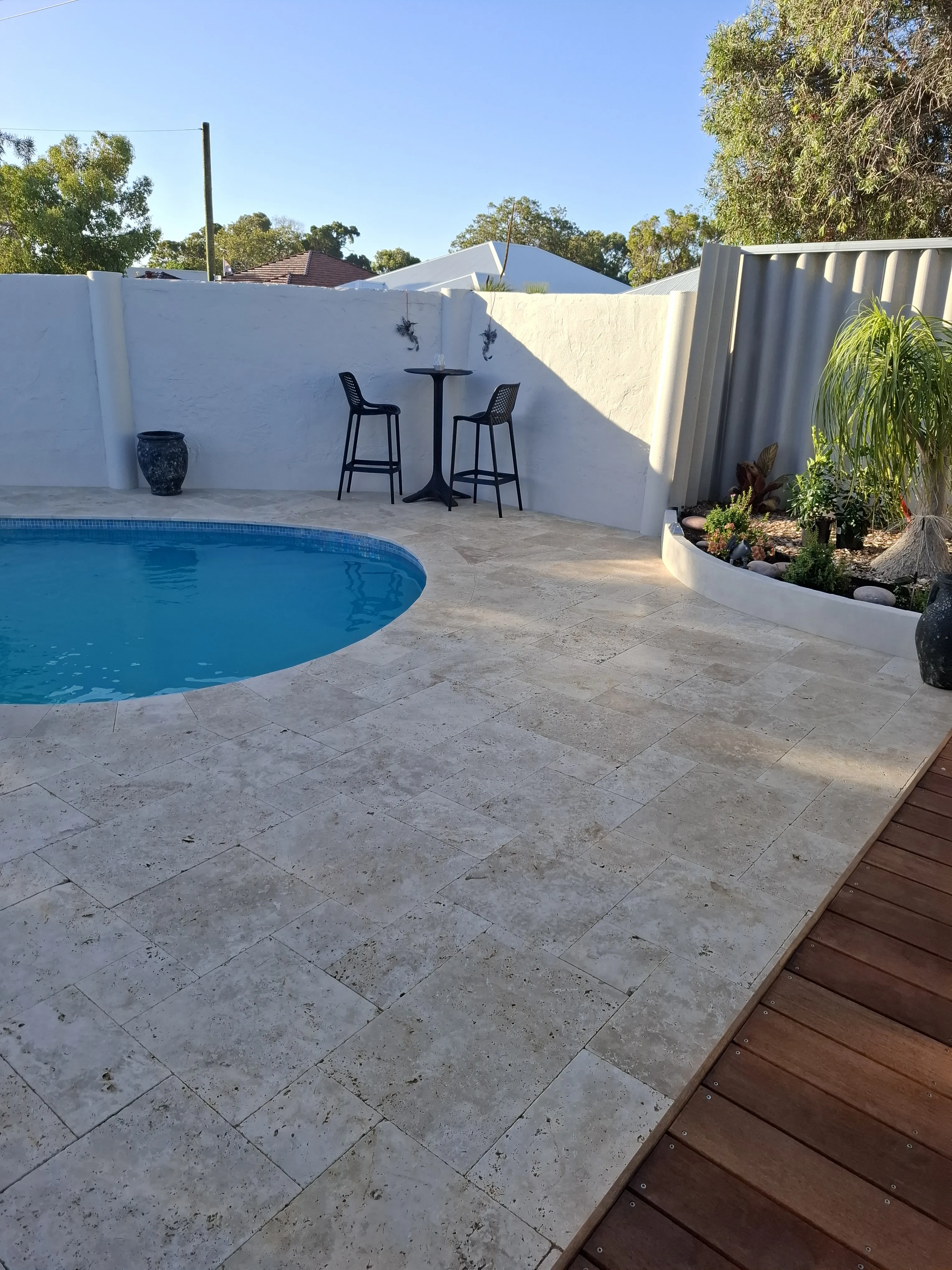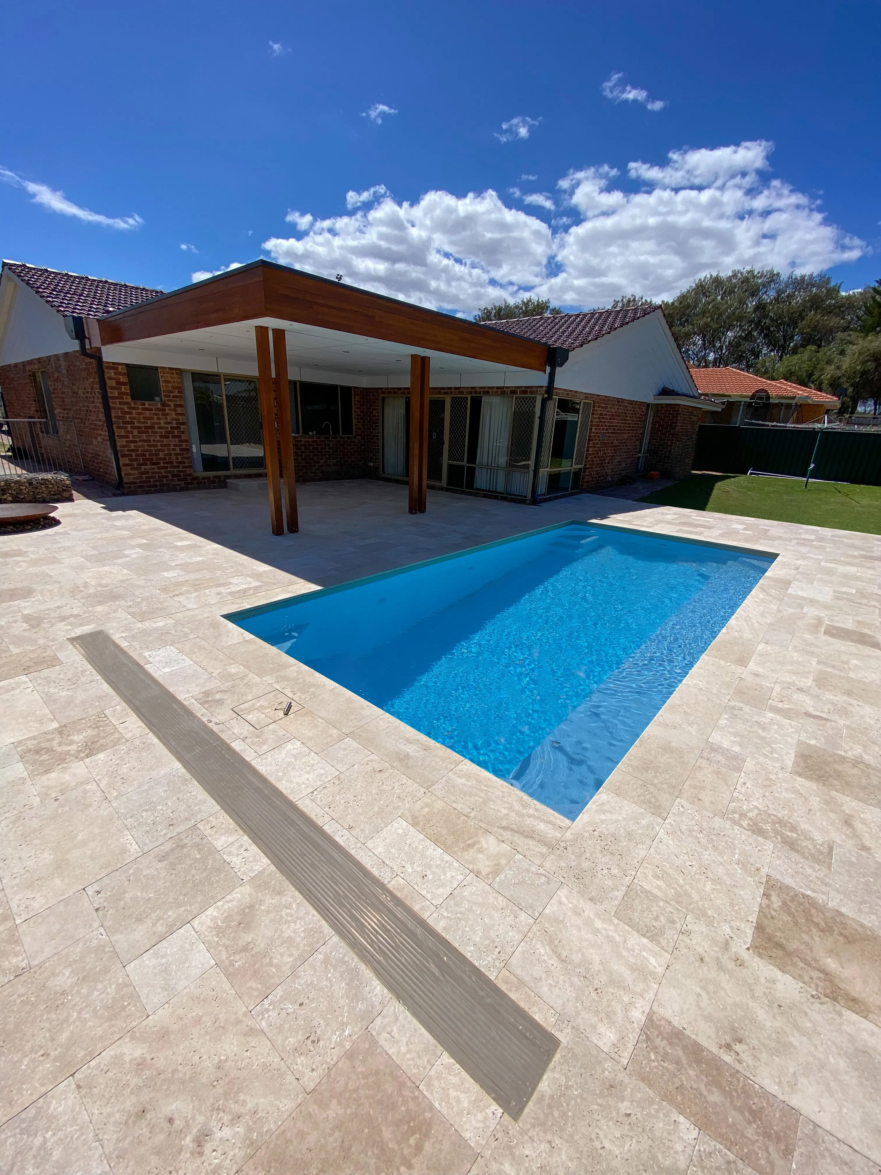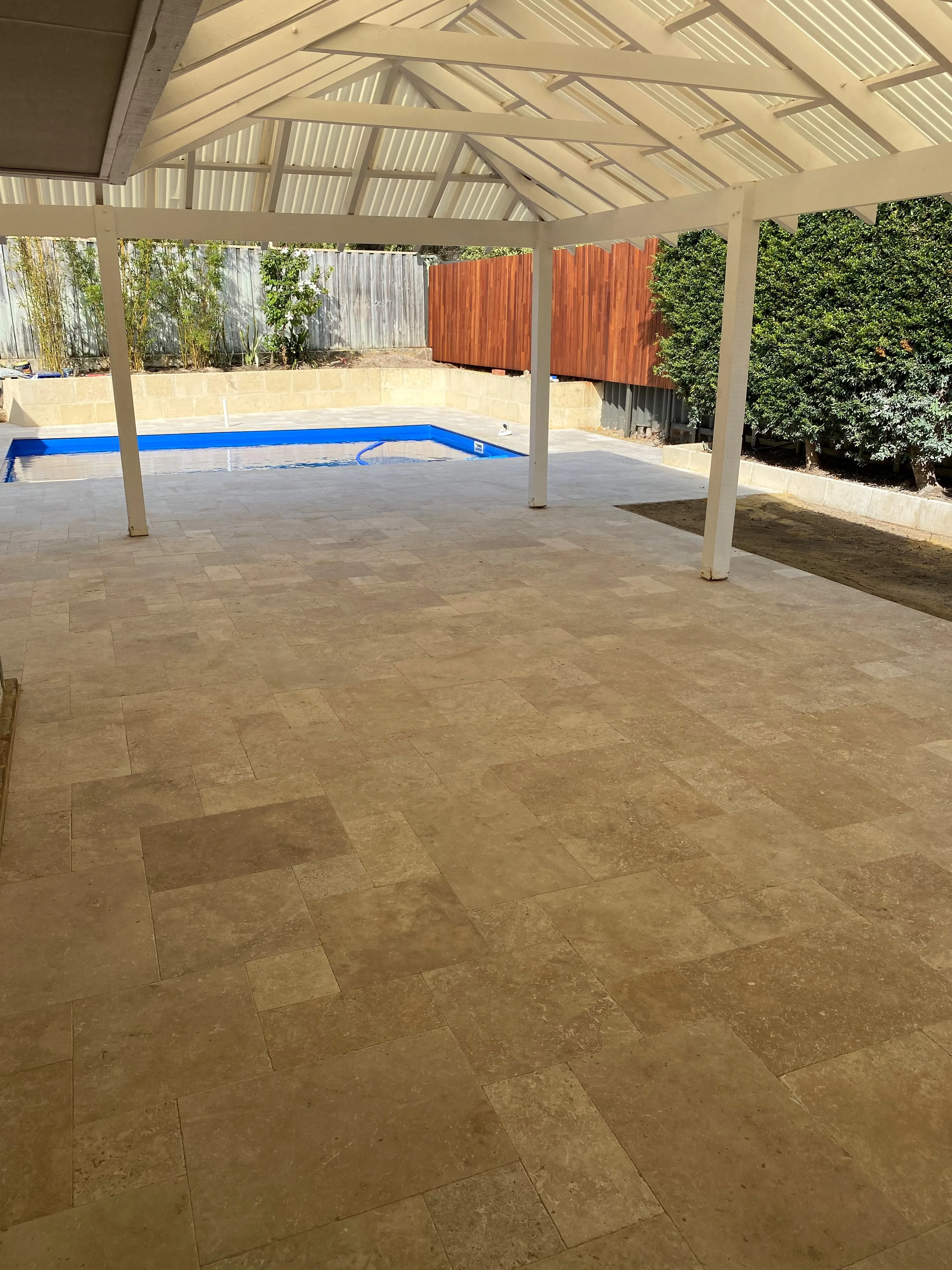 Travertine pavers are cut from a selection of natural stone blocks boasting veins of colour, ensuring a beautiful variation of tones throughout each project. Travertine offers multiple advantages including moderate coolness and a tumbled, lightly textured finish, making it ideal for your pool surrounds or alfresco paving. At Freo Stone Paving our affordable Travertine paver prices offer great value for quality stone. Each stone style from each quarry has also been machined into capping profiles to not only provide a beautiful flow for new projects but also assist in tricky renovation applications. What is certain with Travertine is no two projects will ever look exactly the same. Unlike some other paving solutions, Freo Stone Paving Travertine ensures your creation remains truly unique.